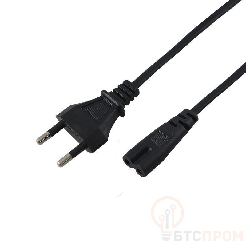 Шнур сетевой СЕЕ 7/16 - разъем IEC 320 C7, 2x0.5 мм2 1.8 м REXANT предназначен для подключения к сети переменного тока (AC) с напряжением 220 B аудио- и видеоаппаратуры, источников питания ноутбуков, игровых консолей и других приборов, имеющих штыревой сетевой разъем типа С8 (известен из-за его формы как «восьмерка»). Данный сетевой шнур (IEC cord) оснащен с одной стороны литой неразборной вилкой СЕЕ 7/16, с другой — литым гнездовым неполяризованным разъемом типа IEC 320 C7 и двухжильным проводом с сечением проводника 0.5 мм2. Основные характеристики: Тип вилки: СЕЕ 7/16 Тип разъема: IEC 320 C7 Максимальная сила тока: 3 А Изоляция жил и общая оболочка изготовлена из ПВХ Длина провода: 1.8 м Шнур имеет многопроволочные жилы, заключенные в эластичную двойную изоляцию из ПВХ, что делает его максимально гибким и увеличивает срок эксплуатации изделия.