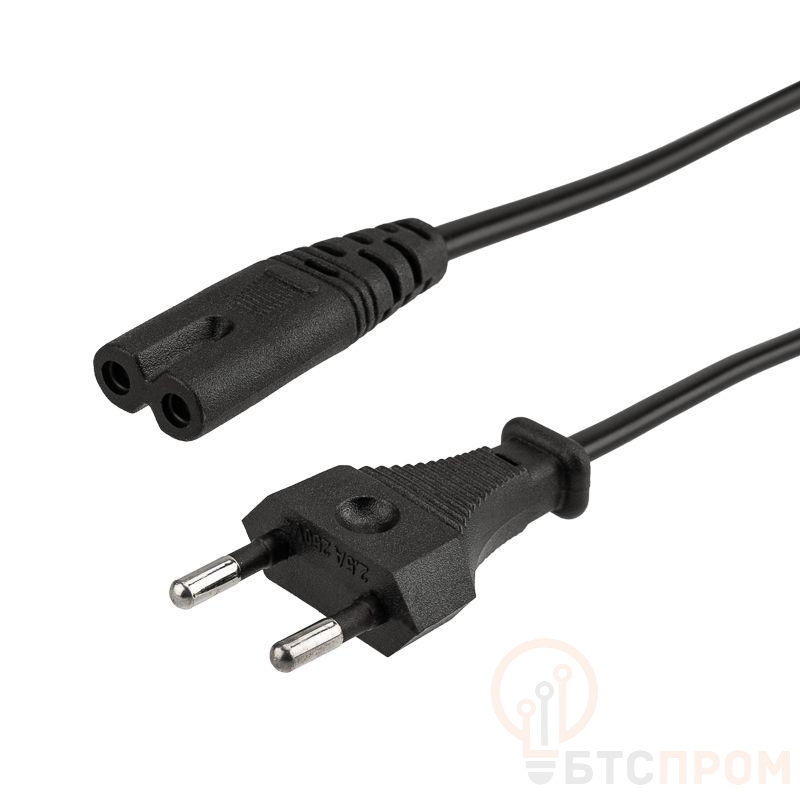 Шнур сетевой СЕЕ 7/16 - разъем IEC 320 C7 5 м 2х0.5 мм2 REXANT предназначен для подключения к сети переменного тока (AC) с напряжением 220 B аудио- и видеоаппаратуры, источников питания ноутбуков, игровых консолей и других приборов, имеющих штыревой сетевой разъем типа С8 (известен из-за его формы как «восьмерка»). Данный сетевой шнур (IEC cord) состоит из двухжильного провода с сечением проводника 0.5 мм2, с одной стороны литой неразборной вилкой СЕЕ 7/16 и с другой — литым гнездовым неполяризованным разъемом типа IEC 320 C7. Основные характеристики: Тип вилки: СЕЕ 7/16 Тип разъема: IEC 320 C7 Максимальная сила тока: 3 А Изоляция жил и общая оболочка изготовлена из ПВХ Длина провода: 5 м Шнур имеет многопроволочные жилы, заключенные в эластичную двойную изоляцию из ПВХ, что делает его максимально гибким и увеличивает срок эксплуатации изделия.
