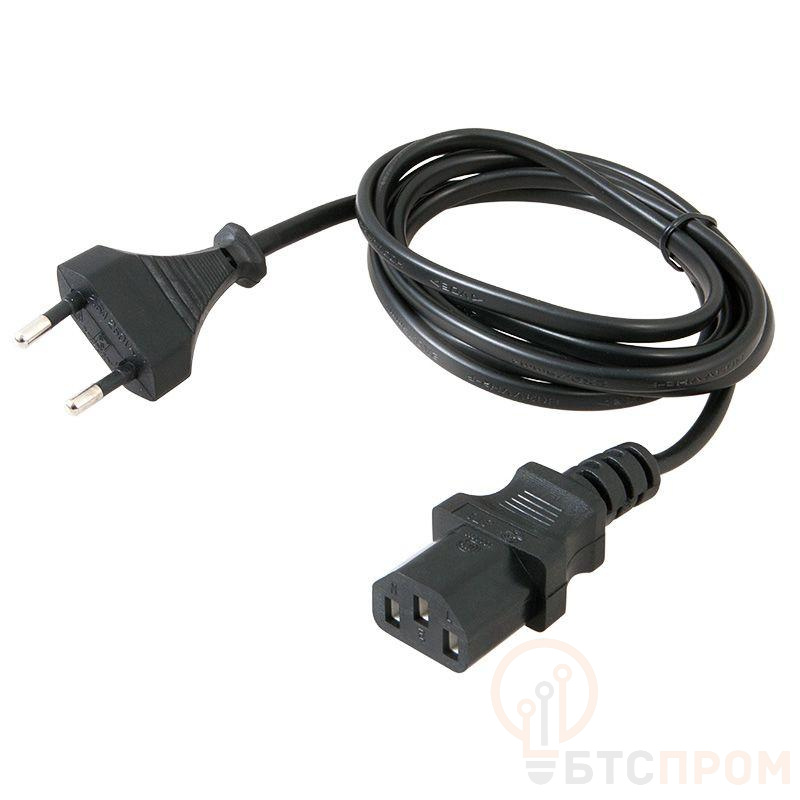 Шнур сетевой плоская вилка 0.75кв.мм 1.8М REXANT предназначен для подключения к сети переменного тока (AC) с напряжением 220B стационарных персональных компьютеров, мониторов, ИБП, принтеров и других периферийных устройств, имеющих штыревой разъём типа C14. Также шнур сетевой Евро (IEC cord) используются для питания многих видов электроприборов, например, усилителей для электронных музыкальных инструментов и профессионального звукового оборудования. Данный шнур IEC оснащен с одной стороны литой неразборной плоской вилкой (Евро), с другой литым гнездовым разъёмом C13 и двухжильным проводом с сечением жил 0.75кв.мм. Основные характеристики: - тип вилки Евро; - тип розетки IEC (С13); - максимальная сила тока 10А; - изоляция жил и общая оболочка изготовлена из ПВХ; - длина провода 1.8 метра. Шнур имеет многопроволочные жилы, заключенные в эластичную двойную изоляцию из ПВХ, что делает его максимально гибким и увеличивает срок эксплуатации изделия.