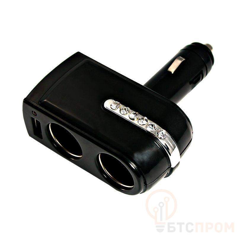 Разветвитель автоприкуривателя предназначен для подключения нескольких электронных устройств к бортовой сети через одну авторозетку, а также для подключения портативного устройства, потребляющего 5 В через гнездо USB. Изделие позволяет подключить любые электронные устройства, потребляющие постоянный ток (DC) напряжением 12 В: видеорегистратор, зарядное устройство, радар-детектор, навигатор, автохолодильник, телевизор, автокомпрессор, автопылесос и т.д. Также возможно подключить различные автомобильные аксессуары: мобильный телефон, MP3-плеер, автомобильный комплект «hands free» и т.д. Корпус изготовлен из ударопрочного пластика и украшен стразами. Оснащен штекером, который позволяет регулировать угол поворота до 90°. Использование разветвителя позволит исключить вмешательство в штатную электропроводку, и тем самым не нарушить гарантию на новый автомобиль. Устройство является технически грамотным решением при подключении электрооборудования и незаменимым аксессуаром для автолюбителя при отсутствии необходимого количества розеток 12 В, а также USB порта.