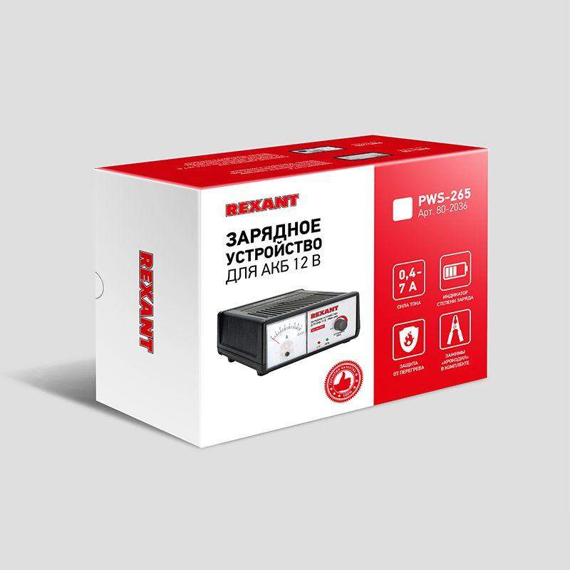 Устройство зарядное автоматическое 0.4-7А (PWS-265) для восстан. работоспособн. автомобил. АКБ с разрядом REXANT 80-2036