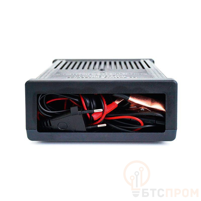 Автоматическое зарядное устройство со стрелочным амперметром и возможностью регулировки зарядного тока используется для восстановления работоспособности автомобильной АКБ в результате ее разряда. Применяется для кондиционирования АКБ, работающей в сложном городском режиме. Устройство также выполняет вспомогательную функцию при попытке запуска автомобиля с разряженной АКБ. Предусмотрена возможность заряжать полностью разряженную АКБ. Прибор может быть использован для заряда иных АКБ, не имеющих прямого отношения к автомобилям (различные батареи мототехники, водного транспорта, систем бесперебойного энергообеспечения ПК). Зарядное устройство оснащено защитой от перегрева элементов, перезарядки, неправильного подключения, а также от короткого замыкания. Предусмотрен оригинальный режим заряда аккумуляторной батареи с «буферным режимом». Тип зарядного устройства – импульсное. В комплектацию входят: прибор, сетевой шнур и выходные провода с зажимами типа крокодил (не съемные), инструкция по эксплуатации и гарантийный талон, упаковка.