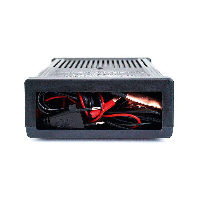Автоматическое зарядное устройство используется для восстановления работоспособности автомобильной АКБ в результате ее разряда. Применяется для кондиционирования АКБ, работающей в сложном городском режиме. Устройство также выполняет вспомогательную функцию при попытке запуска автомобиля с разряженной АКБ. Предусмотрена возможность заряжать полностью разряженную АКБ. Прибор может быть использован для заряда иных АКБ, не имеющих прямого отношения к автомобилям (различные батареи мототехники, водного транспорта, систем бесперебойного энергообеспечения ПК). Зарядное устройство оснащено защитой от перегрева элементов, перезарядки, неправильного подключения, а также от короткого замыкания. Предусмотрен оригинальный режим заряда аккумуляторной батареи с «буферным режимом». Тип зарядного устройства – импульсное. В комплектацию входят: прибор, сетевой шнур и выходные провода с зажимами типа крокодил (не съемные), инструкция по эксплуатации и гарантийный талон, упаковка.
