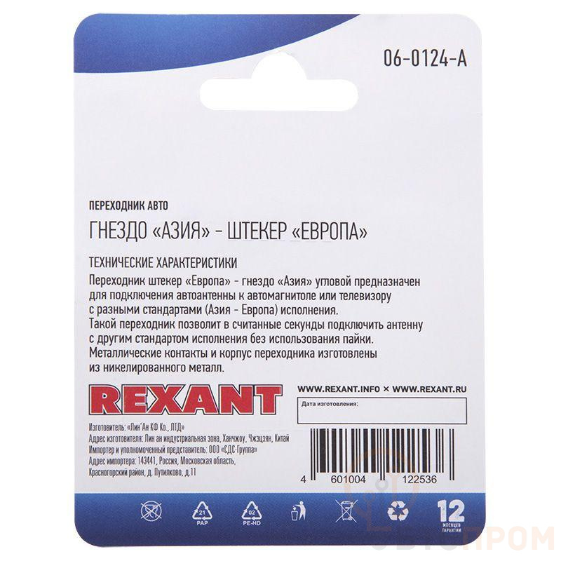 Переходник штекер «Европа» - гнездо «Азия» угловой предназначен для подключения автоантенны к автомагнитоле или телевизору с разными стандартами (Азия - Европа) исполнения. Такой переходник позволит в считанные секунды подключить антенну с другим стандартом исполнения без использования пайки. Металлические контакты и корпус переходника изготовлены из никелированного металл.