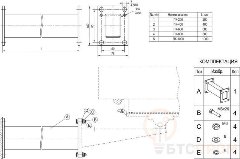 Переходник кронштейна для крепления кронштейнов типа КТ КТУ и КТУН 400мм ПК-400 Тахион 40151 фото в каталоге от BTSprom.by
