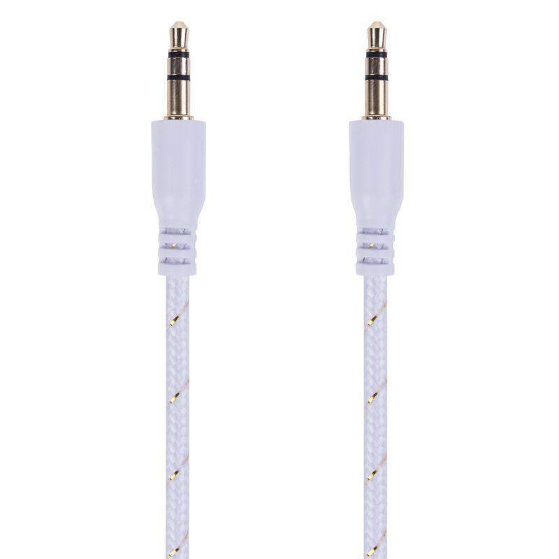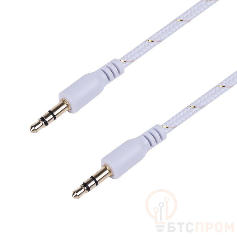 –Кабель аудио AUX 3.5мм в тканевой оплетке 1м бел. Rexant 18-4070