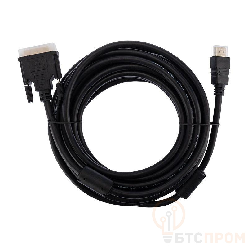 Шнур HDMI - DVI-D REXANT предназначен для передачи цифрового видеоизображения высокого разрешения и многоканального аудио сигнала. Используется для совместной работы устройств, имеющих разъемы DVI-D и HDMI: проекторы, телевизоры, компьютеры и ноутбуки, мультимедийные проигрыватели и т.д. С одной стороны устройства расположен штекер разъема HDMI, а с другой – штекер разъема DVI. Наличие ферритовых фильтров способствует подавлению помех и обеспечивает воспроизведение абсолютно точного оригинального сигнала. Для производства жил используется только первичная, технически чистая медь (99%). На контакты разъемов нанесен слой золота по технологии вакуумного напыления, что обеспечивает повышение качественных показателей изображения и звука, а также отсутствие помех при передаче сигналов. Штекеры выполнены из легкого и прочного пластика. Длина шнура составляет 7 м. Поставляется в ПВХ упаковке.