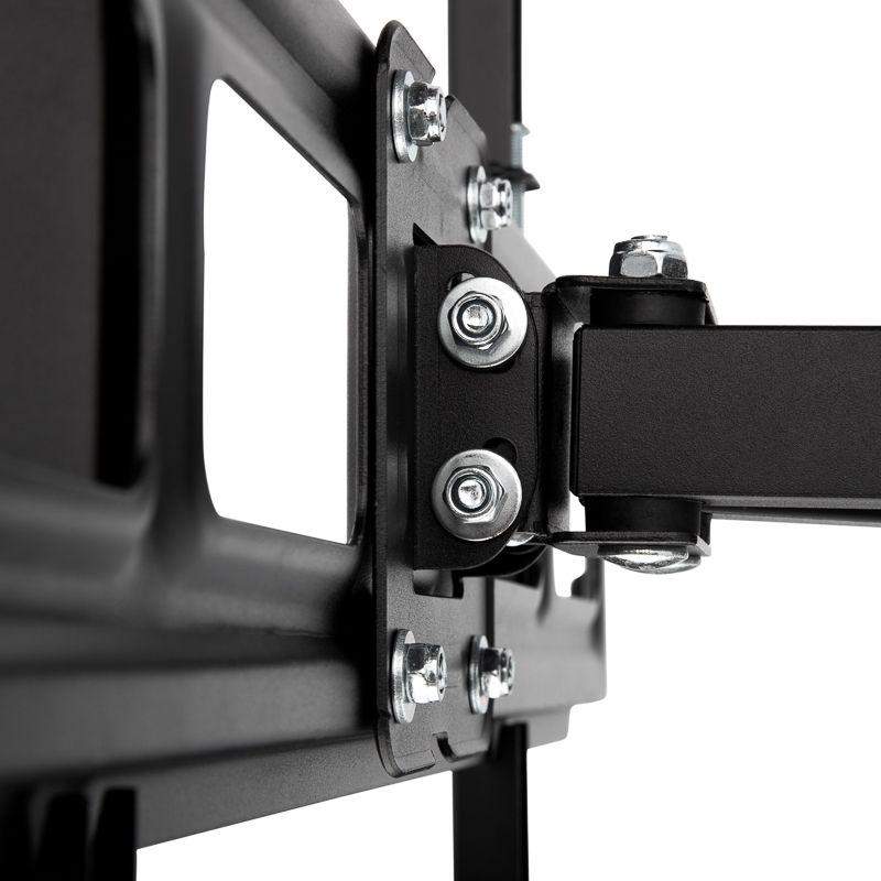 Кронштейн REXANT используется для крепления LED, LCD, PLASMA телевизоров 32"- 65" дюймов к стене. Оснащен наклонно-поворотным механизмом (с двойным коленом), который позволяет свободно регулировать положение телевизора, что обеспечивает комфортный и удобный просмотр вне зависимости от Вашего расположения в комнате. В любой момент телевизор можно повернуть в нужную Вам сторону, выставить необходимый угол наклона и избежать бликов при смене освещения. Конструкция механизма позволяет точно и надежно фиксировать заданное положение с максимальной точностью. Кронштейн изготовлен из прочной и износоустойчивой стали, что гарантирует безопасность в процессе использования. В комплекте поставляется пузырьковый уровень, а также все необходимые крепления для установки изделия, что обеспечивает удобный и быстрый монтаж. Расстояние от стены до кронштейна регулируется от 82 до 371 мм. Поддержка крепления стандарта VESA: 75х75/100х100/200x200/300x300/400x400/600х400