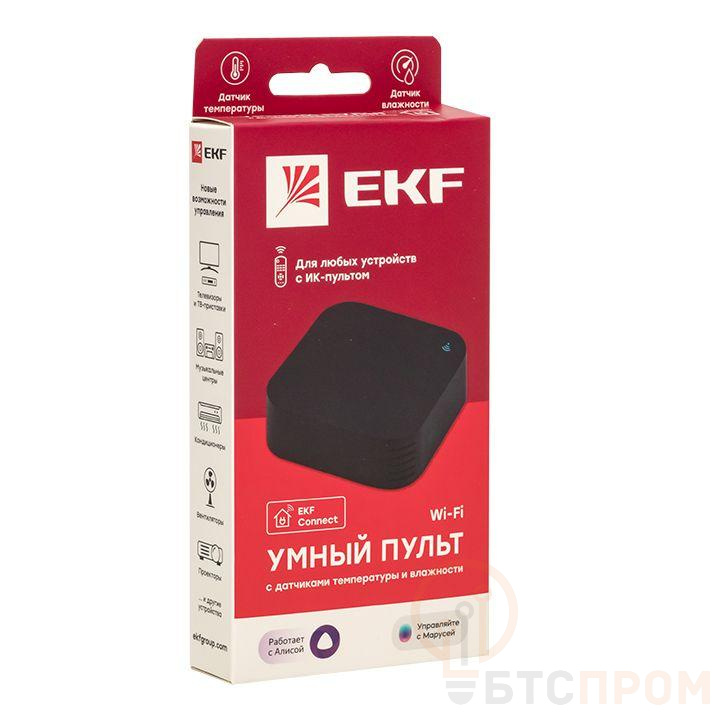 Умный пульт EKF Connect позволяет управлять любыми устройствами, у которых есть свой ИК-пульт, через приложение и через голосовые помощники Алису от Яндекса, Марусю от VK и Салют от Сбера. Примеры устройств, которыми можно управлять - кондиционеры, телевизоры, музыкальные центры. В умный пульт встроены датчики температуры и влажности, что позволяет не только видеть эти параметры в приложении EKF Connect Home, но и создавать автоматические сценарии, например, чтобы кондиционер включался, когда температура превышает заданное значение, а умная розетка с увлажнителем включалась, когда влажность становится слишком низкой. Преимущества: Работает с iOS и Android Работает с Алисой, Марусей и Салютом. Режим обучения позволяет подключать даже те модели устройств, которых нет в базе приложения