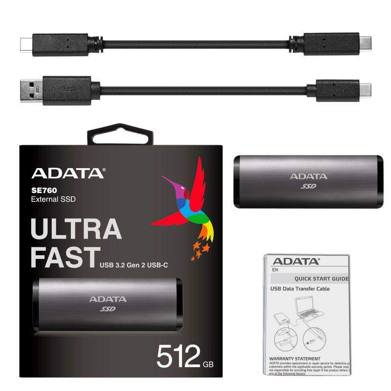 Диск жесткий внешний ASE760-512GU32G2-CTI 512GB SE760 External SSD USB 3.2 Gen2 Type-C R1000/W1000 Titan-Gray ADATA 1000582969