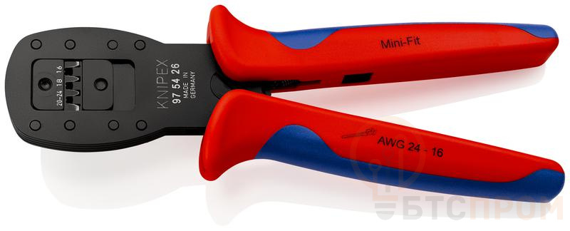 Пресс-клещи для миниатюрных штекеров параллельный обжим штекеры Molex LLC кол-во гнезд: 3 AWG 16/18/20-24 L-190мм Knipex KN-975426