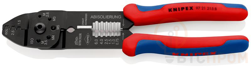 Пресс-клещи для резки и зачистки кабеля 3 гнезда Knipex KN-9721215B фото в каталоге от BTSprom.by