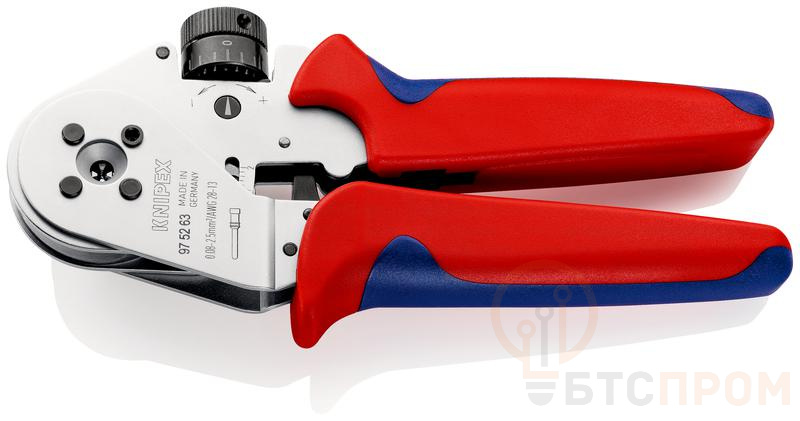 Пресс-клещи для тетрагональной опрессовки точеные контакты 0.08-44318кв.мм (AWG 28-13) контакт Knipex KN-975263