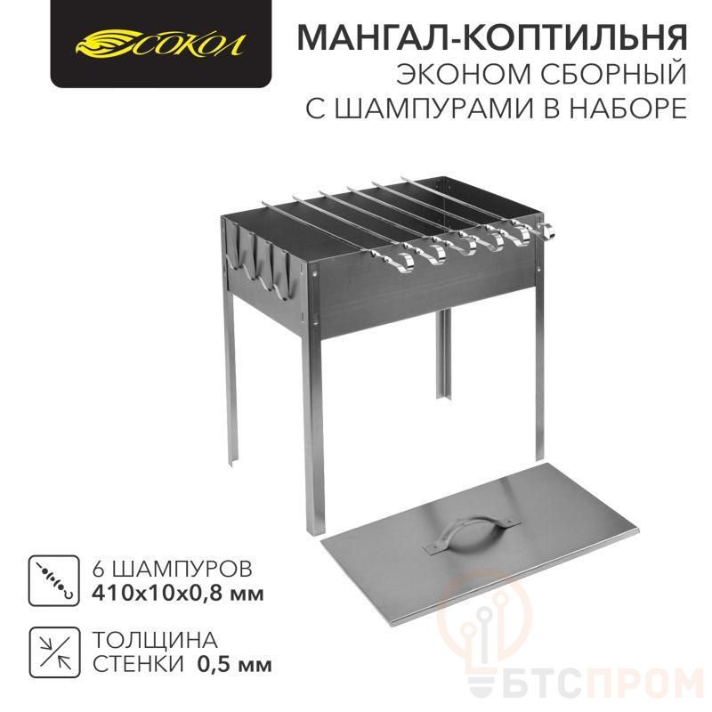 Мангал-коптильня "ЭКОНОМ" сборная с шестью шампурами в наборе (6х410мм) в гофрокартонной коробке СОКОЛ 62-0012
