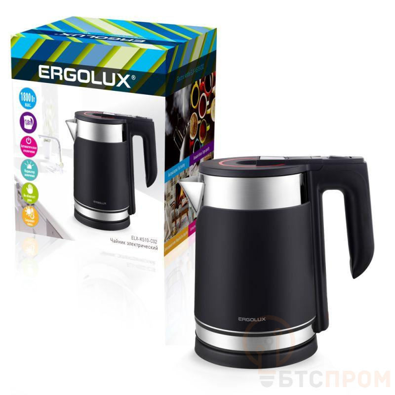 –Чайник электрический ELX-KS10-C02 нерж. сталь/пластик 1.8л 220-240В 1800Вт черн. Ergolux 15328