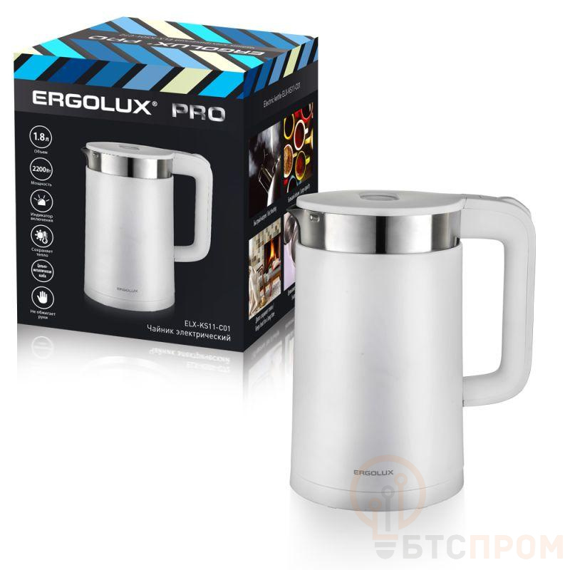 Чайник электрический ELX-KS11-C01 PRO нерж. сталь/пластик 1.8л 220-240В 2200Вт бел. Ergolux 15329 фото в каталоге от BTSprom.by