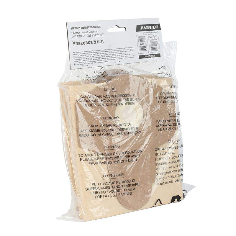 –Пылесборник бумажный для пылесосов VC 205 VC 206T 20л (уп.5шт) PATRIOT 755302065