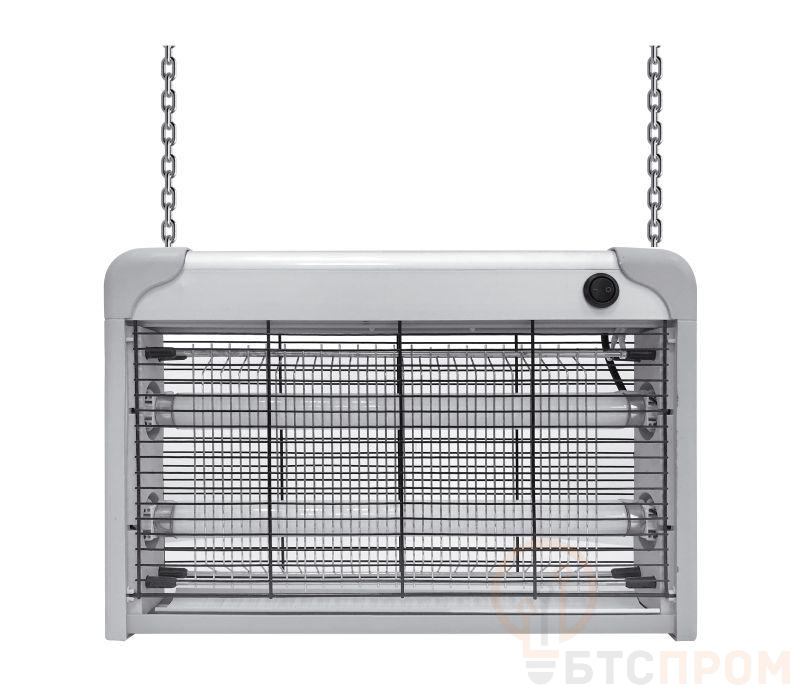 Антимоскитный светильник используется как в помещениях и рассчитан на 30 кв.м., так и на открытых пространствах (под навесом). Излучая ультрафиолетовое свечение, привлекает комаров, мошек, мотыльков и других летающих насекомых. Насекомые погибают, коснувшись металлической решетки под безопасным для человека напряжением. Безвреден для человека. В комплекте имеются цепи для подвеса и контейнер для москитов. Выключатель на корпусе. Мощность - 2х10Вт (люм лампа T8) IP44