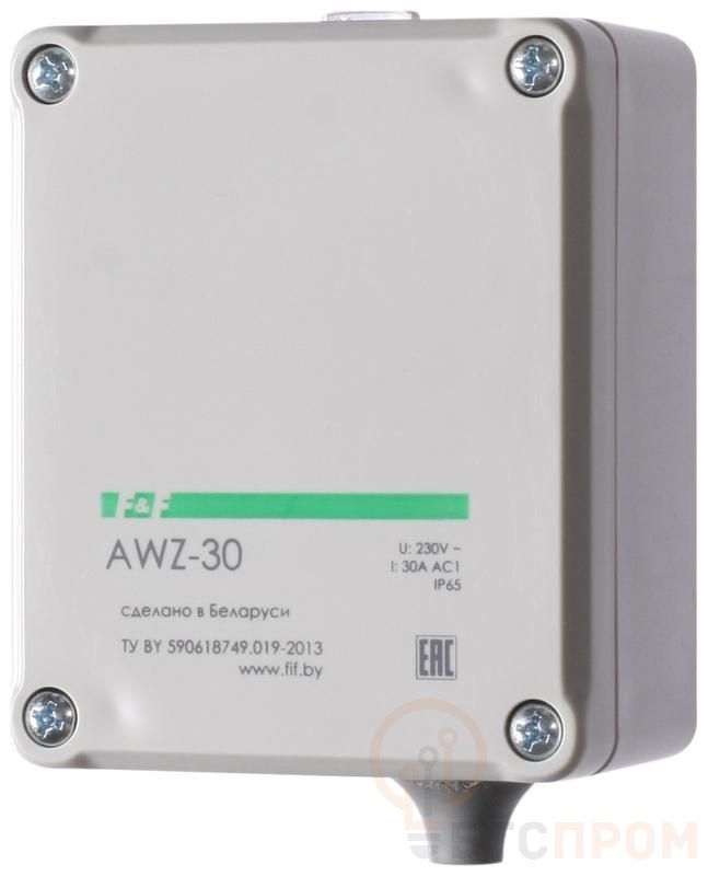 Фотореле (автомат светочувствительный) AWZ-30 предназначен для автоматического включения освещения в сумерки и выключения на рассвете. Особенности - Герметичный (IP65). - Встроенный фотодатчик. Область применения Для управления освещением улиц, витрин магазинов, рекламы, автостоянок, железнодорожных переездов, остановочных пунктов, строек, коттеджей и т.п. Принцип работы основан на контроле уровня освещенности встроенным фотодатчиком. Автомат оснащен схемой помехозащиты от ложных срабатываний. Максимальный ток нагрузки - 30 А.