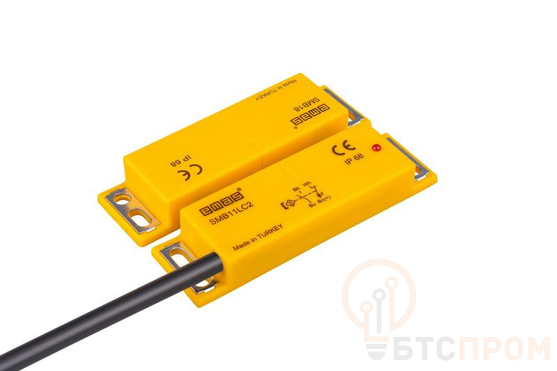 Датчик магнитный (1НЗ+1НО) провод 2м (расст. сраб. 8мм) индикация LED левый выход IP68 EMAS SMB11LC2-B18