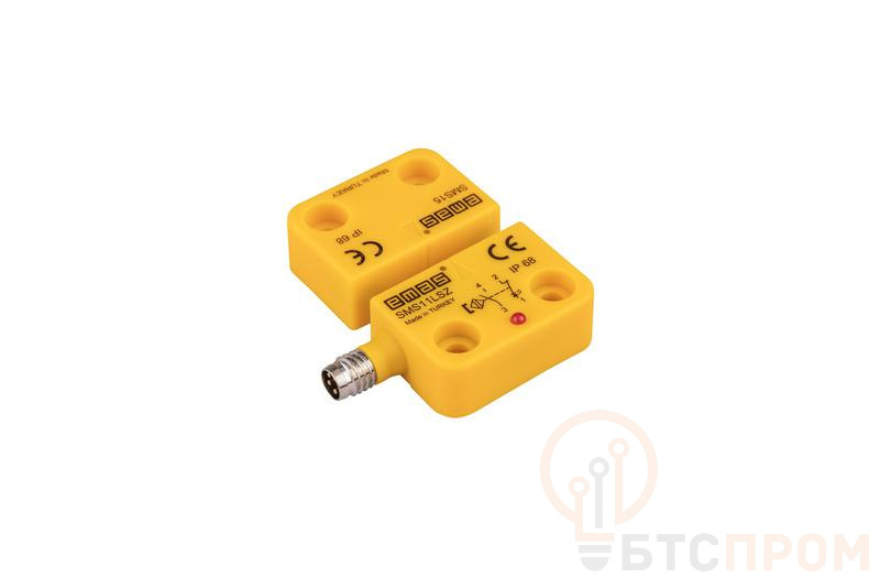 Датчик магнитный (1НЗ+1НО) разъем M8х4 (расст. сраб. 5мм) индикация LED левый выход IP68 EMAS SMS11LSZ-S15
