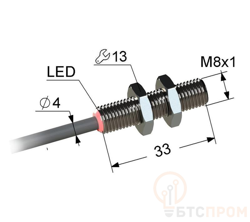 - Тип датчика: индуктивный бесконтактный выключатель.