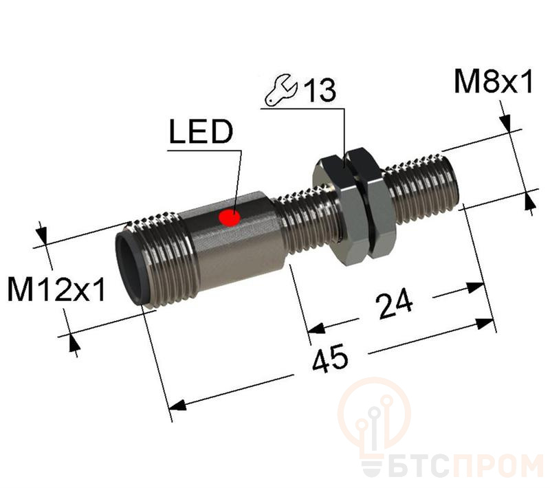 Ключевые характеристики: тип PNP (NO), рабочее напряжение 10-30 В постоянного тока, ток нагрузки до 200 мА, расстояние срабатывания 8 мм. Выходной ток защищен от короткого замыкания и переполюсовки. Четырехпроводная схема подключения с одним нормально разомкнутым и одним нормально замкнутым контактом обеспечивает гибкость при интеграции в различные схемы управления.