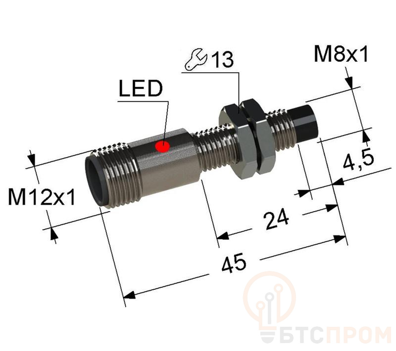 - Выходной сигнал: PNP (NO), 3-проводное подключение