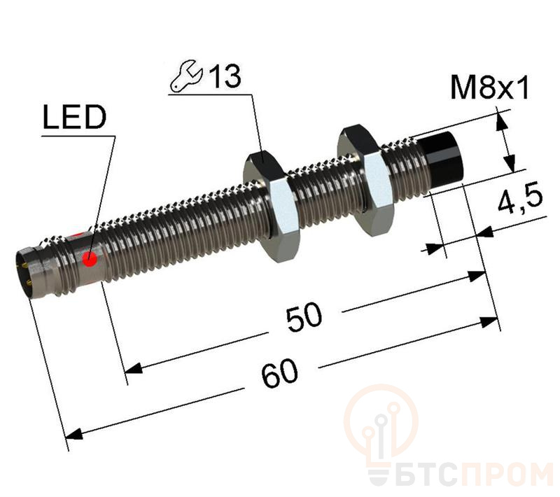- Тип датчика: индуктивный, цилиндрический