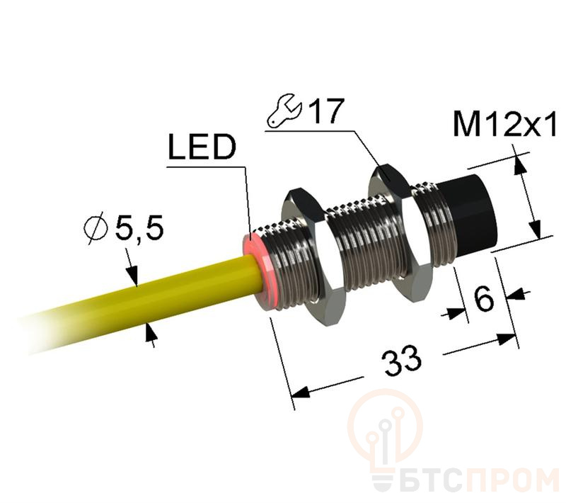 - Корпус: цилиндрический, резьба M33