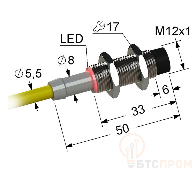 - Корпус: цилиндрический, резьба M12x1