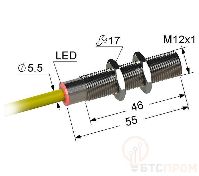 - Выходной сигнал: PNP, нормально разомкнутый (NO)