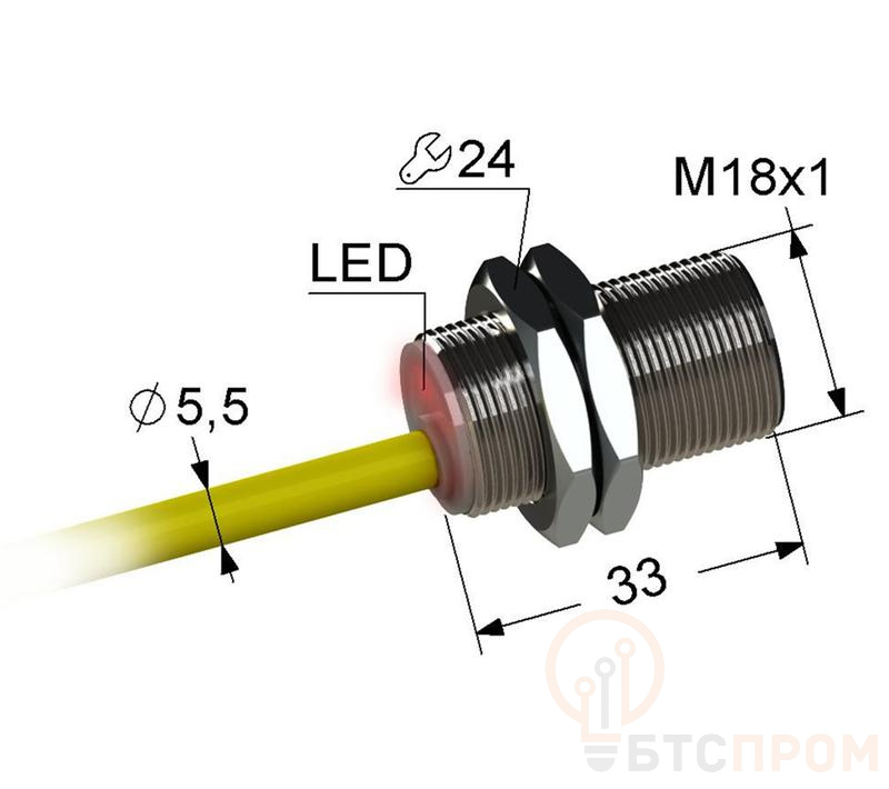 - Выходной сигнал: PNP, нормально разомкнутый (NO).