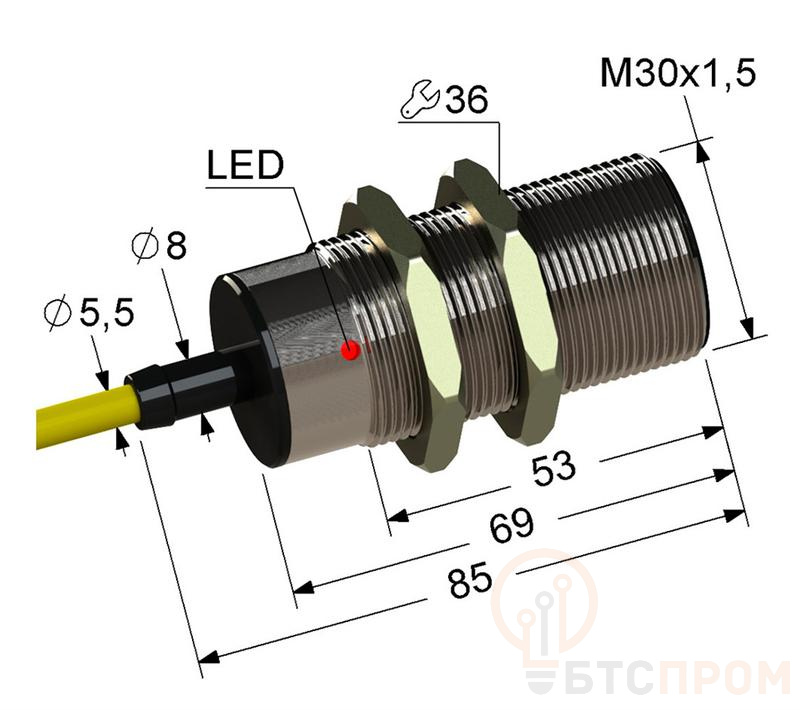 - Тип выходного сигнала: PNP (нормально закрытый).