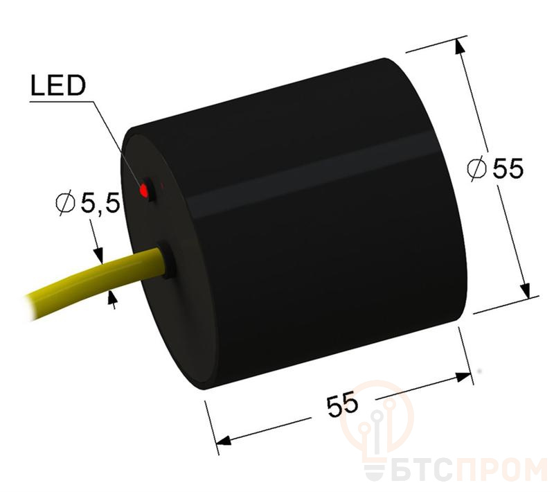 Устройство относится к индуктивному типу датчиков приближения с нормально разомкнутым контактом (PNO) и напряжением питания 24-240 В переменного тока. Корпус выполнен из латуни с никелевым покрытием, что гарантирует механическую прочность и коррозионную стойкость. Чувствительный элемент имеет диаметр 30 мм и комплектуется кабельным выводом длиной 2 метра.