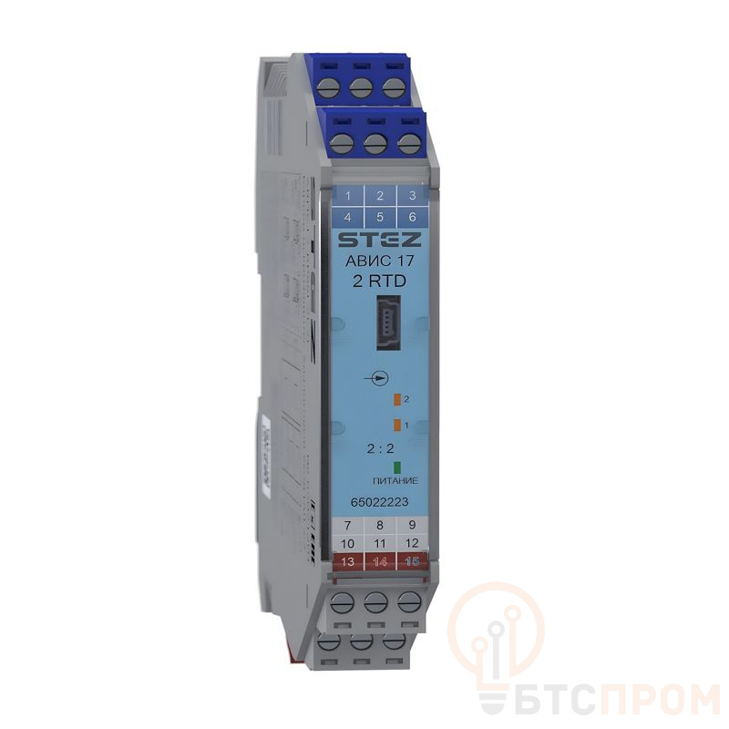 Преобразователь термосопротивлений барьер искрозащиты АВИС17-2RTD-2I-C от производителя СТЭЗ (арт. 65022223) — это ключевой элемент систем безопасности на взрывоопасных производствах. Устройство предназначено для защиты цепей измерения температуры, преобразования сигнала от двух датчиков термосопротивлений (RTD) в унифицированный токовый выходной сигнал 0-5 мА или 4-20 мА.