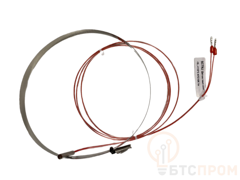 Датчик температуры контактный, диапазон -10…+110°С, выходной сигнал NTC 10 кОм B=3950K, диаметр трубы O15…100мм, бескорпусное исполнение, кабель 1 м