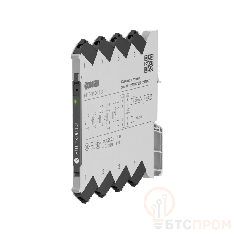 Преобразователь аналоговых сигналов НПТ-1К.00.1.3 от компании ОВЕН (артикул 77427) — это многофункциональное устройство, предназначенное для точного преобразования и гальванической развязки стандартных токовых и напряженческих сигналов. Аппарат принимает входной сигнал 0...5 мА, 0...20 мА или 0...5 В и преобразует его в пропорциональный унифицированный выходной сигнал 0...5 мА, 0...20 мА или 0...5 В.