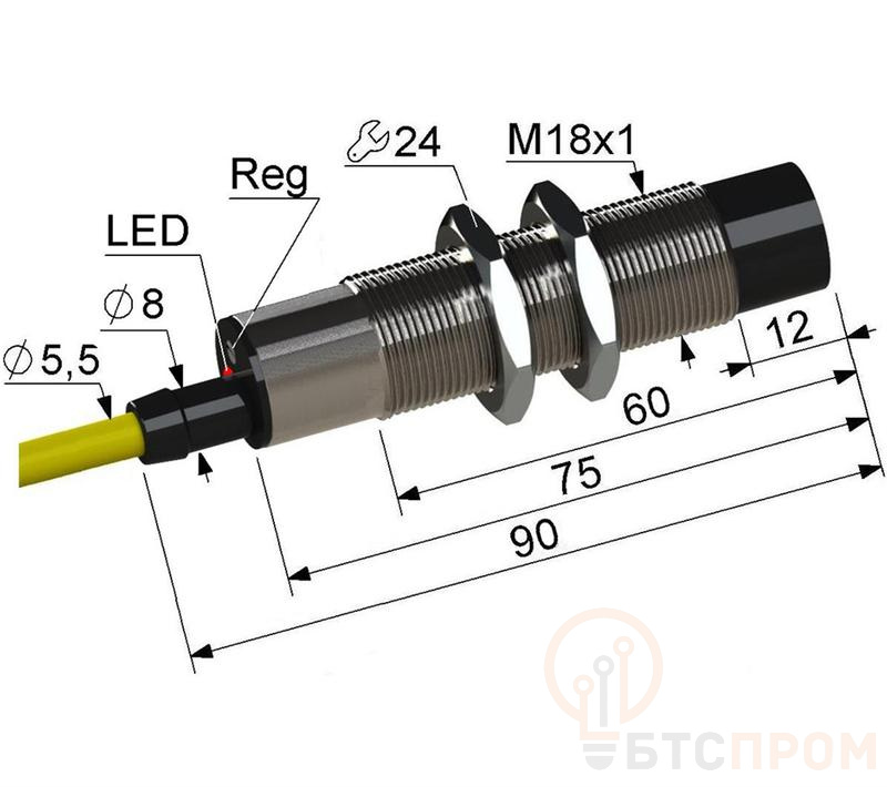 - Исполнение: 3-проводное, PNP-выход (NO), нормально разомкнутый контакт