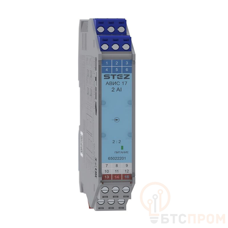 Барьер искрозащиты разделительный преобразователь входных аналоговых сигналов АВИС17-RPSSI-2I-2I-N СТЭЗ 65022201