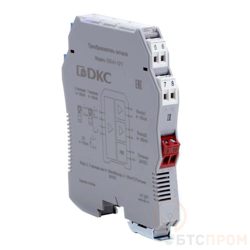 Преобразователь сигнала DSI, 1 вход 4…20 мА, 2 выхода 4…20 мА служит для деления, и усиления входного сигнала 4…20 мА, а также для гальванической развязки входной, выходной цепи и источника питания.