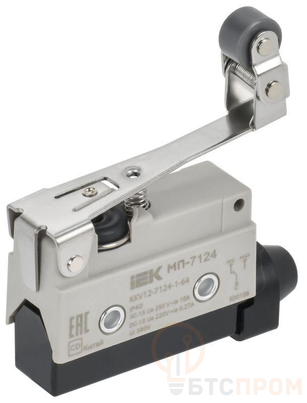 Микропереключатель концевой МП-7124 IP40 рычаг с регулир. роликом IEK KKV12-7124-1-64 фото в каталоге от BTSprom.by