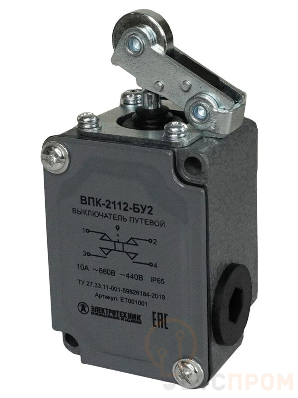 Выключатель путевой конечный ВПК-2112-БУ2 IP65 рычаг с роликом Электротехник ET001001 фото в каталоге от BTSprom.by