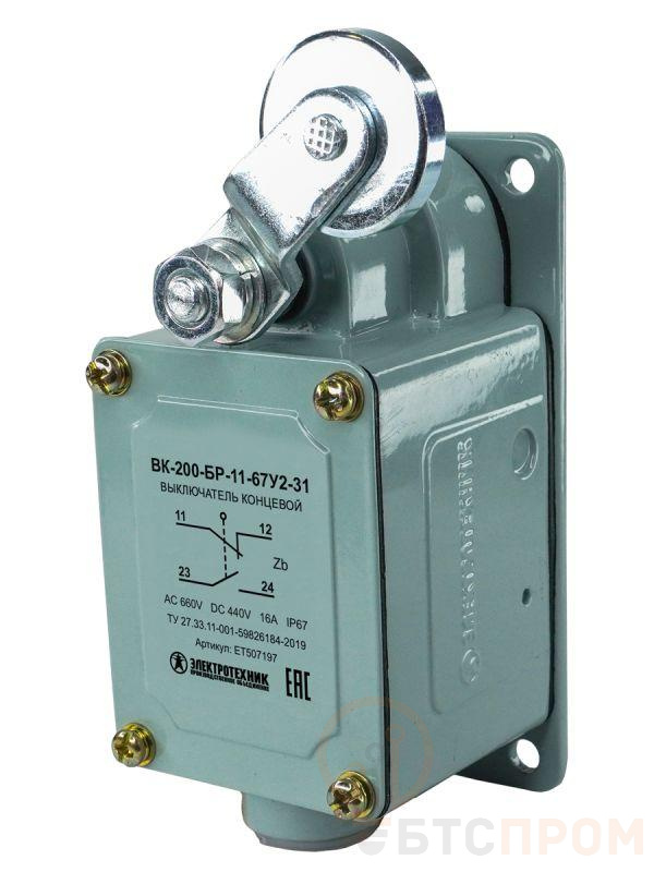 Выключатель конечн. ВК-200-БР-11-67У2-31 рычаг с роликом без сальника ход вправо самовозврат ступень 3 IP67 Электротехник ET507197