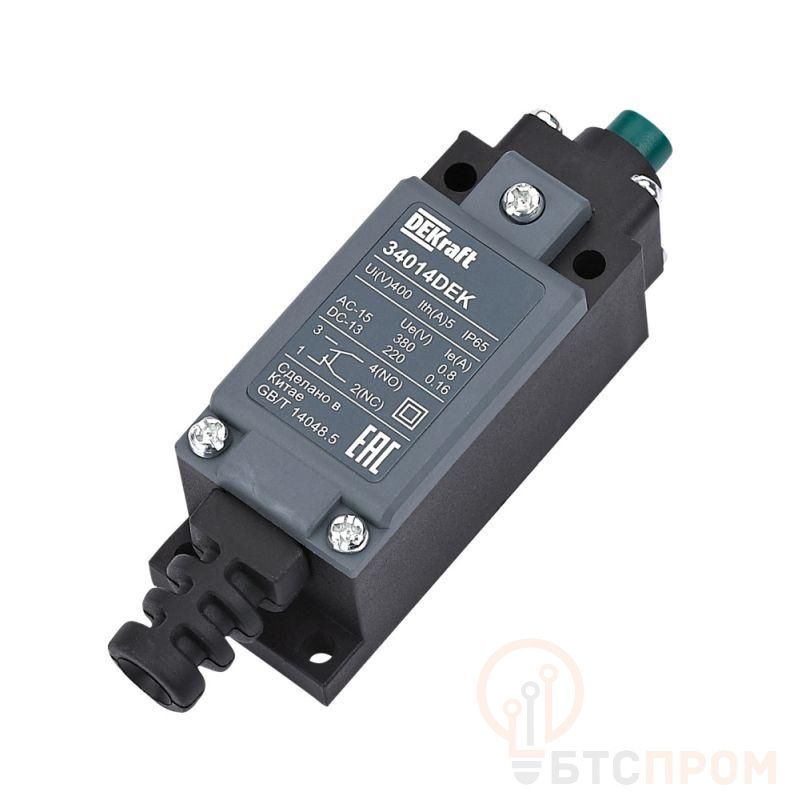 Концевой выключатель с группой контатков 1НО1НЗ, исполнения типа кнопочный плунжер; имеет термопластичный корпус с двойной изоляцией, модульную конструкцию, облегчающую техническое обслуживание, а также компактную форму (в соответствии с DIN EN 50047-2020). Степени защиты IP65 и IK04 обеспечивают ударопрочность, что делает его идеальным для интенсивного использования в тяжелых условиях эксплуатации. Выключатель крепится на оборудование при помощи монтажных винтов с метрической или самонарезной резьбой и имеет электрическую изностойкость не менее 1 миллионов циклов в категории DC-13, он соответствует стандартам ГОСТ IEC 60947.-5-1, ГОСТ IEC 60204-1