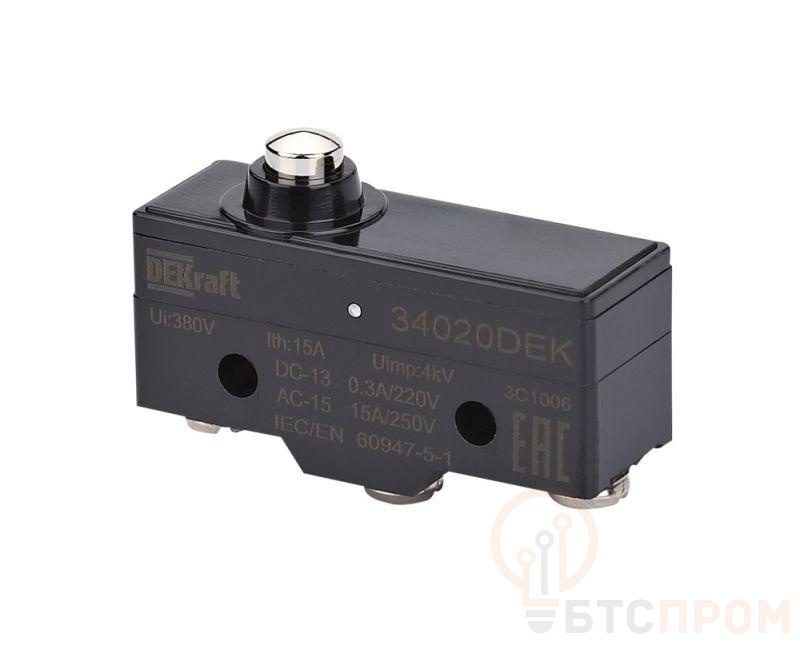 Миниатюрный концевой выключатель с группой контатков 1НО1НЗ, плунжерного типа; имеет термопластичный корпус с двойной изоляцией, модульную конструкцию, облегчающую техническое обслуживание, а также компактную форму (в соответствии с DIN EN 50047-2020). Степени защиты IP65 и IK04 обеспечивают ударопрочность, что делает его идеальным для интенсивного использования в тяжелых условиях эксплуатации. Выключатель крепится на оборудование при помощи монтажных винтов с метрической или самонарезной резьбой и имеет электрическую изностойкость не менее 500 тысяч циклов в категории DC-13, он соответствует стандартам ГОСТ IEC 60947.-5-1, ГОСТ IEC 60204-1