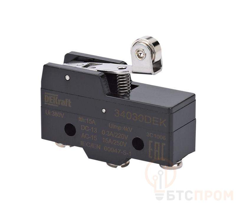 Выключатель концевой 1НО1НЗ миниатюрный шарнирн. короткого рычажного типа с метал. роликом DEKraft 34030DEK