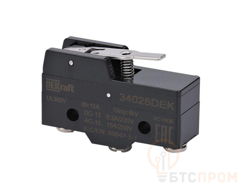 Миниатюрный концевой выключатель с группой контатков 1НО1НЗ, шарнирного типа с коротким рычагом; имеет термопластичный корпус с двойной изоляцией, модульную конструкцию, облегчающую техническое обслуживание, а также компактную форму (в соответствии с DIN EN 50047-2020). Степени защиты IP65 и IK04 обеспечивают ударопрочность, что делает его идеальным для интенсивного использования в тяжелых условиях эксплуатации. Выключатель крепится на оборудование при помощи монтажных винтов с метрической или самонарезной резьбой и имеет электрическую изностойкость не менее 500 тысяч циклов в категории DC-13, он соответствует стандартам ГОСТ IEC 60947.-5-1, ГОСТ IEC 60204-1