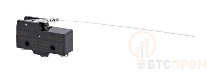 Выключатель концевой 1НО1НЗ миниатюрный шарнирн. типа с коротким рычагом и длин. рукояткой DEKraft 34031DEK