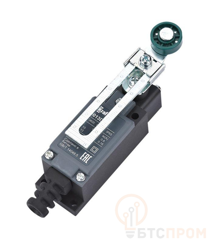 Концевой выключатель с группой контатков 1НО1НЗ, с роликовым рычагом регулиремой длины из термопласта; имеет термопластичный корпус с двойной изоляцией, модульную конструкцию, облегчающую техническое обслуживание, а также компактную форму (в соответствии с DIN EN 50047-2020). Степени защиты IP65 и IK04 обеспечивают ударопрочность, что делает его идеальным для интенсивного использования в тяжелых условиях эксплуатации. Выключатель крепится на оборудование при помощи монтажных винтов с метрической или самонарезной резьбой и имеет электрическую изностойкость не менее 1 миллионов циклов в категории DC-13, он соответствует стандартам ГОСТ IEC 60947.-5-1, ГОСТ IEC 60204-1
